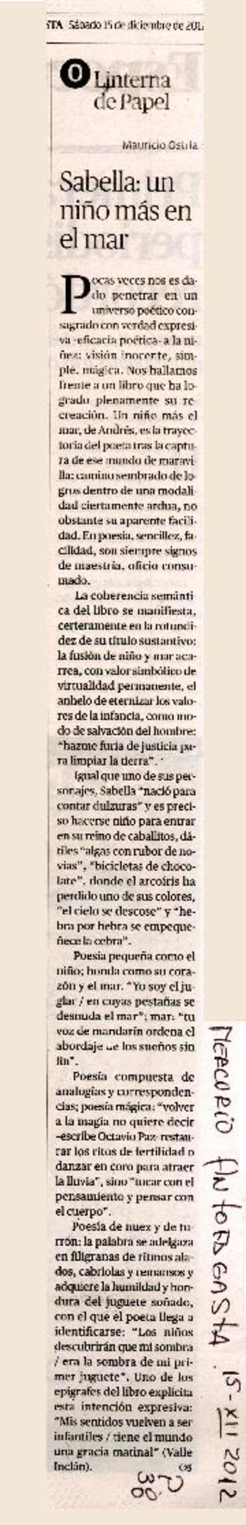 Sabella: un niño más en el mar [artículo] Mauricio Ostria.
