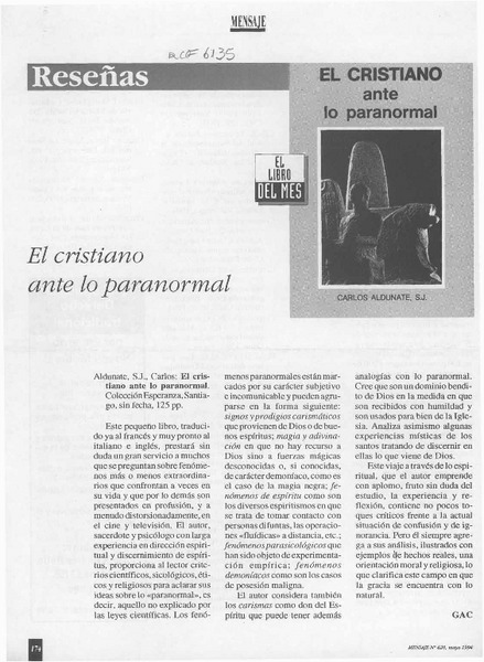 Autores chilenos - Aldunate, Carlos - El cristianp ante lo paranormal