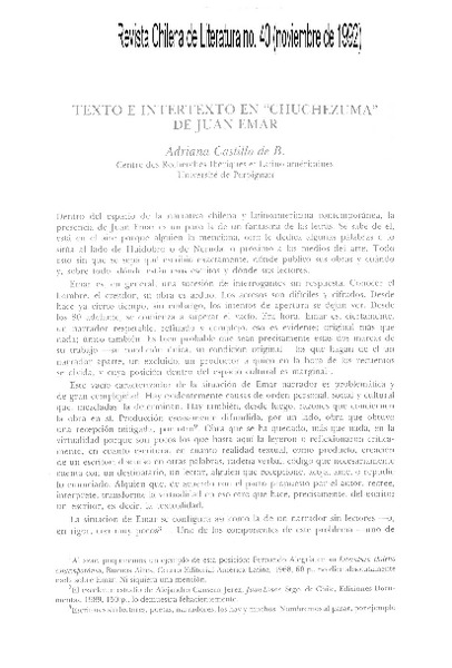 Texto e intertexto en "Chuchezuma" de Juan Emar [artículo] Adriana Castillo de B.
