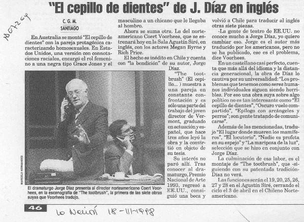"El cepillo de dientes" de J. Díaz en inglés [artículo] C. G. M.