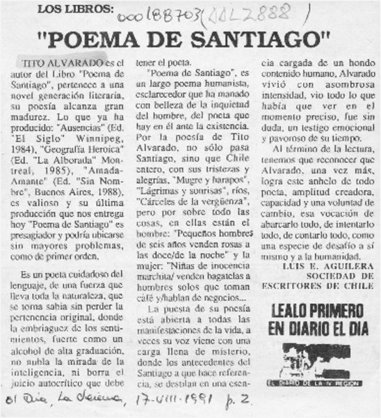 "Poema de Santiago" [artículo] Luis E. Aguilera.