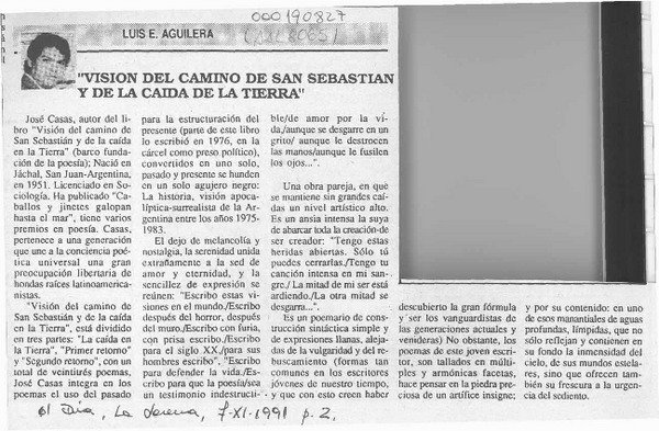 "Visión del camino de San Sebastián y de la caída de la tierra" [artículo] Luis E. Aguilera.