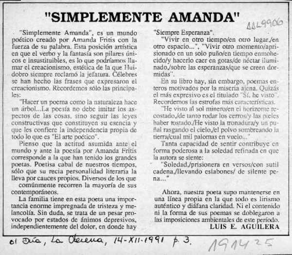 "Simplemente Amanda" [artículo] Luis E. Aguilera.
