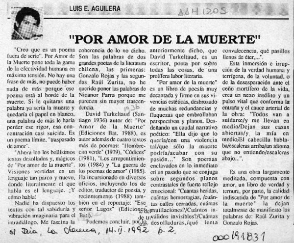 "Por amor de la muerte" [artículo] Luis E. Aguilera.
