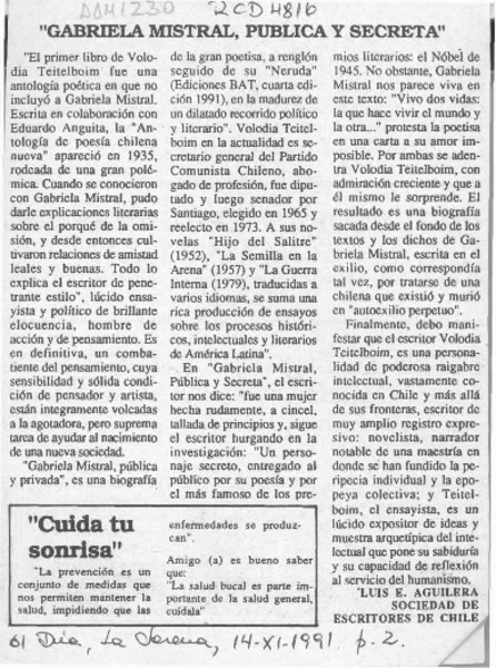 "La niña de Elqui" [artículo] Luis E. Aguilera.