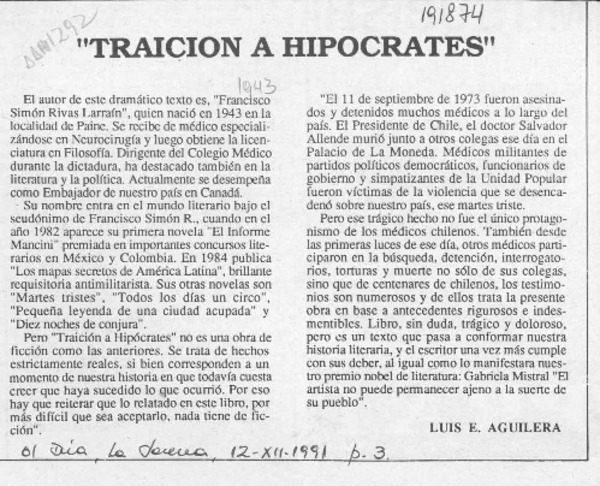 "Traición a Hipócrates" [artículo] Luis E. Aguilera.