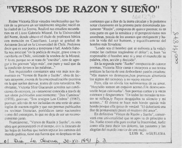 "Versos de razón y sueño" [artículo] Luis E. Aguilera.