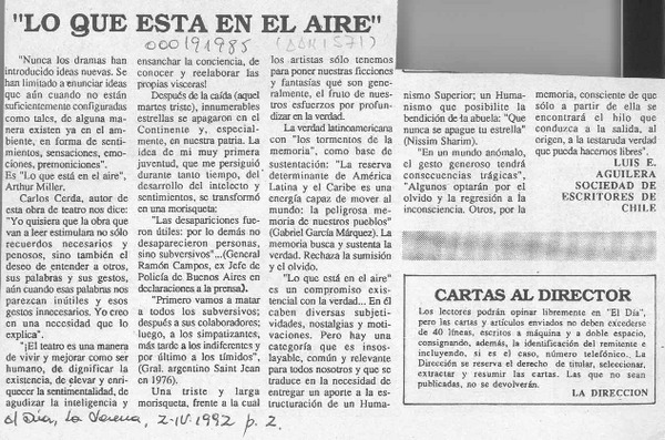 "Lo que está en el aire" [artículo] Luis E. Aguilera.