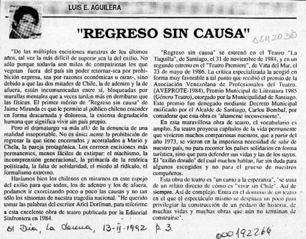 "Regreso sin causa" [artículo] Luis E. Aguilera.