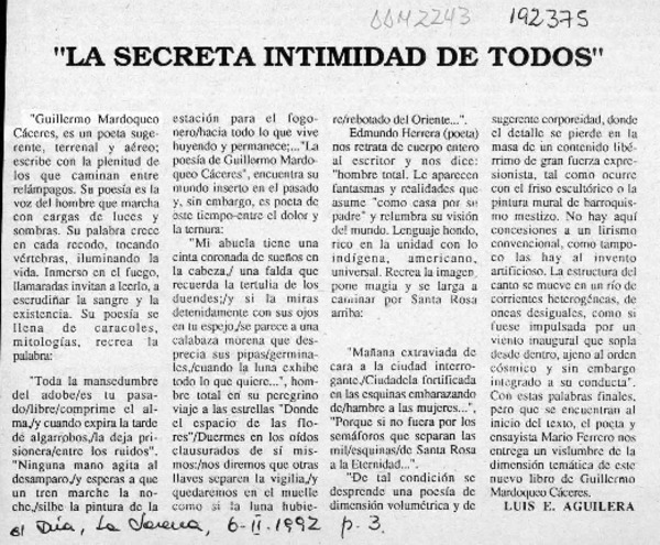 "La secreta intimidad de todos" [artículo] Luis E. Aguilera.