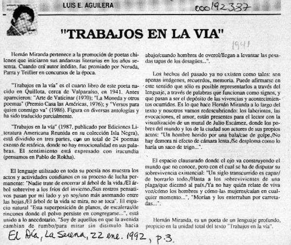 "Trabajos en la vía" [artículo] Luis E. Aguilera.