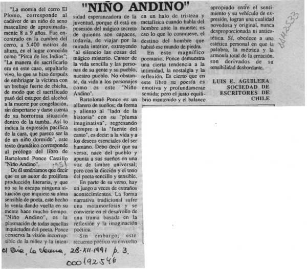 PONCE CASTILLO, BARTOLOME - NIÑO ANDINO