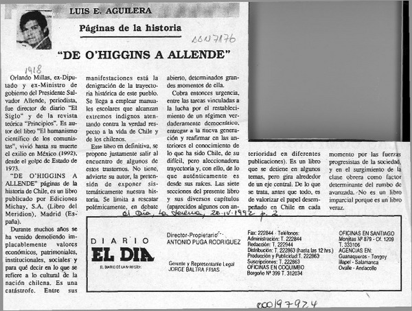 "De O'Higgins a Allende" [artículo] Luis E. Aguilera.