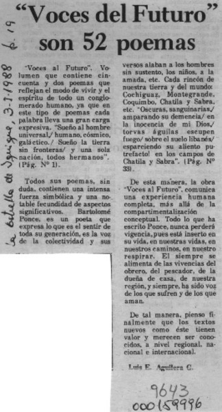 "Voces del futuro" son 52 poemas [artículo] Luis E. Aguilera C.