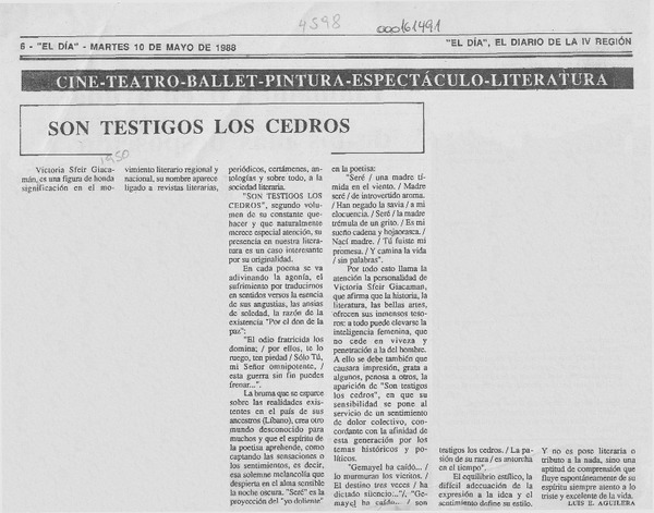 Son testigos los cedros [artículo] Luis E. Aguilera.