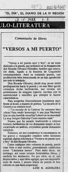 "Versos a mi puerto" [artículo] Luis E. Aguilera.