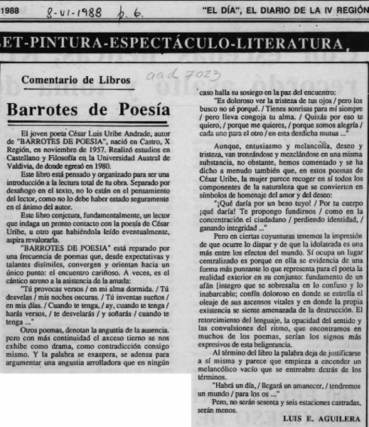 Barrotes de poesía [artículo] Luis E. Aguilera.