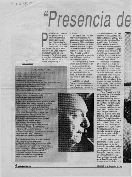 "Neruda, voz y universo" [artículo]Luis E. Aguilera.
