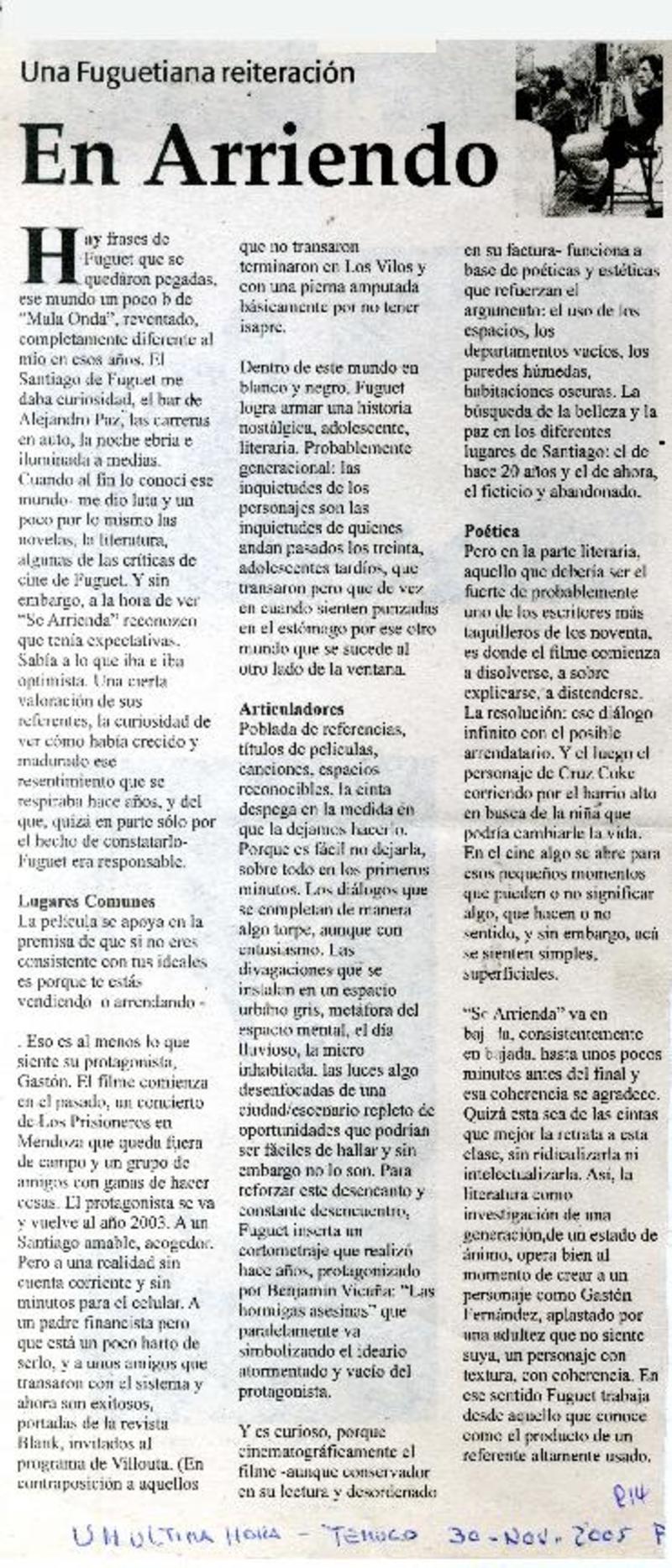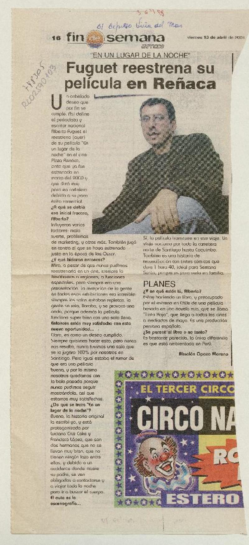 Fuguet reestrena su película en Reñaca : [entrevistas] [artículo] Absalón Opazo Moreno.