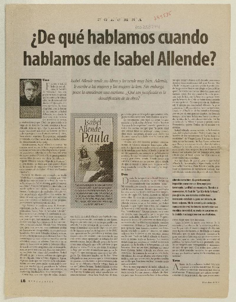De qué hablamos cuando hablamos de Isabel Allende? [artículo] Alberto Fuguet.