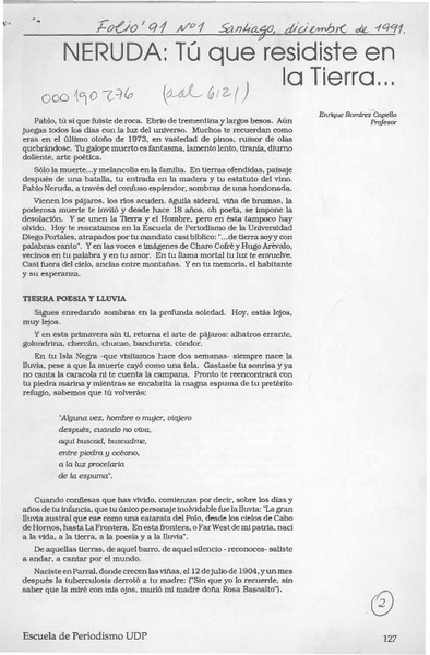 De tierra soy y con palabras canto" [artículo] Enrique Ramírez Capello.