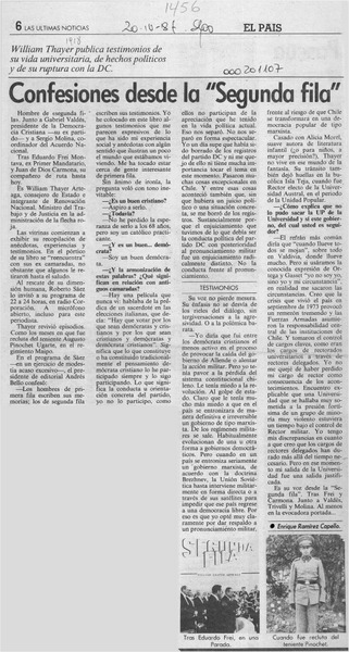 Confesiones desde la "Segunda fila" [artículo] Enrique Ramírez Capello.