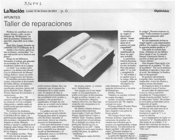 Taller de reparaciones [artículo] Enrique Ramírez Capello
