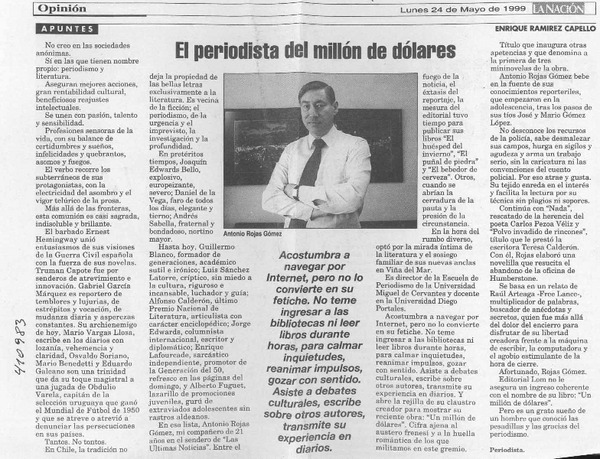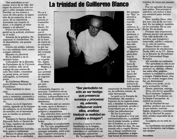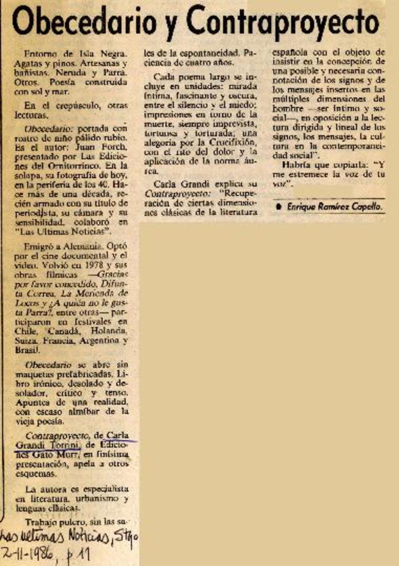 Un oficio odioso, solitario y duro" [artículo] Enrique Ramírez Capello.
