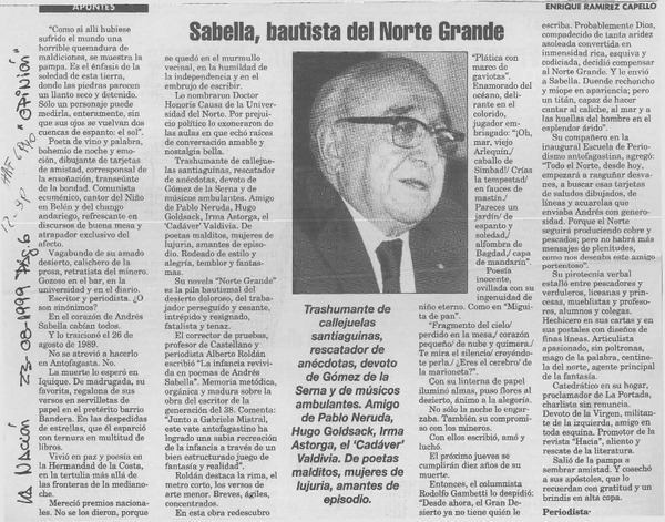 Sabella, bautista del norte grande [artículo] Enrique Ramírez Capello.
