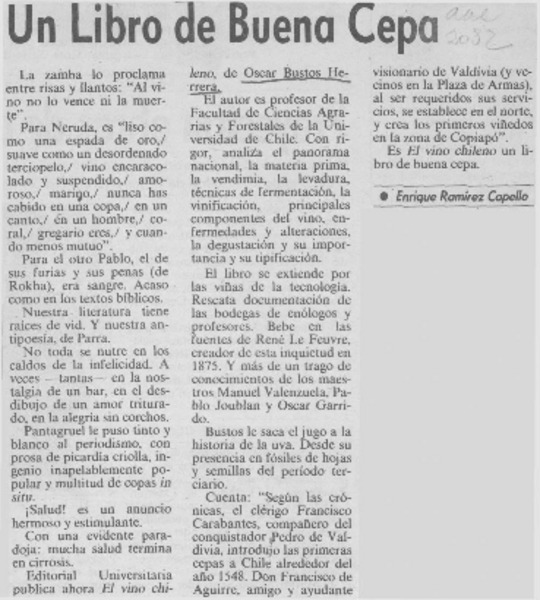 Un libro de buena cepa [artículo] Enrique Ramírez Capello.