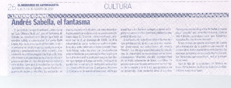 Andrés Sabella, el fantasma [artículo] Enrique Ramírez Capello.
