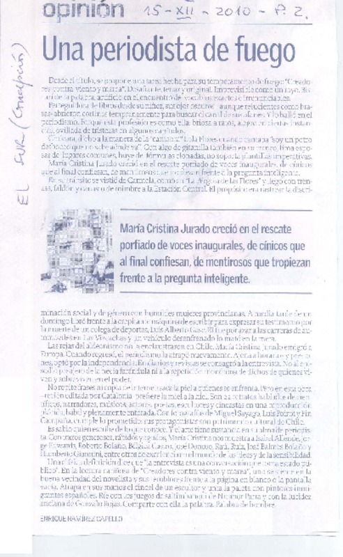Una periodista de fuego [artículo] Enrique Ramírez Capello.