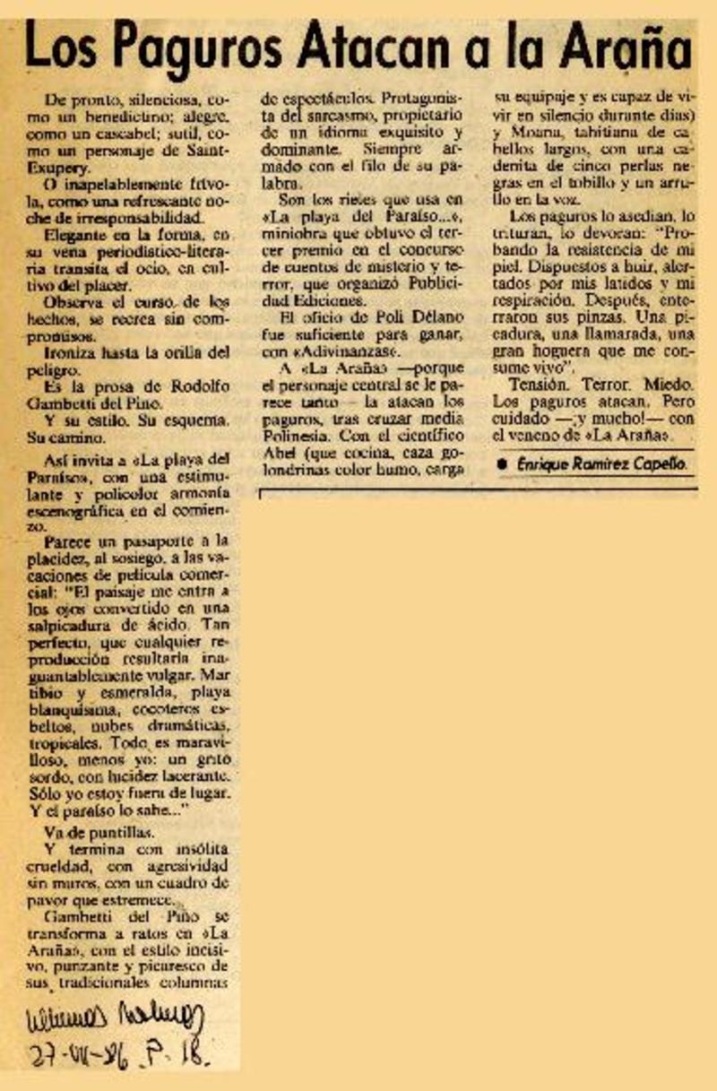 Aperitivo para un plato fuerte [artículo] Enrique Ramírez Capello.