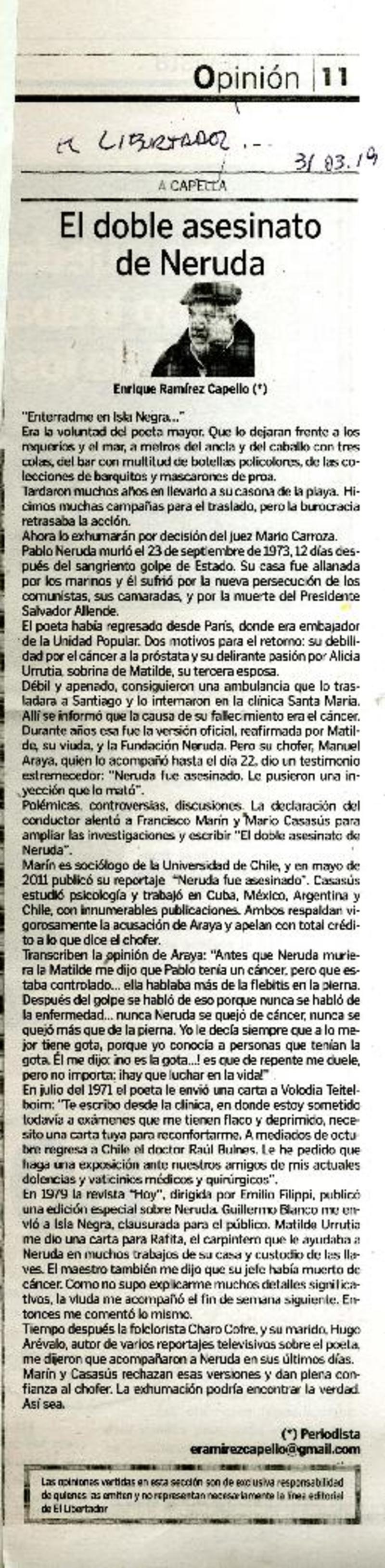 Un "sicario" sale a "matar" [artículo] Enrique Ramírez Capello.