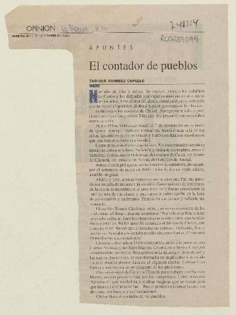 Retrato de un "contador" de Chiloé [artículo] Enrique Ramírez Capello.