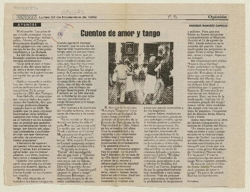 Cuentos de amor y tango [artículo] Enrique Ramírez Capello