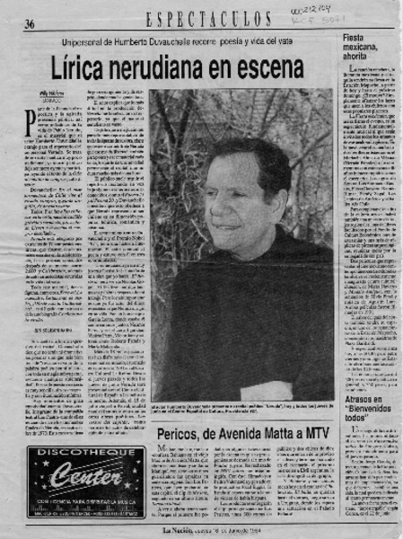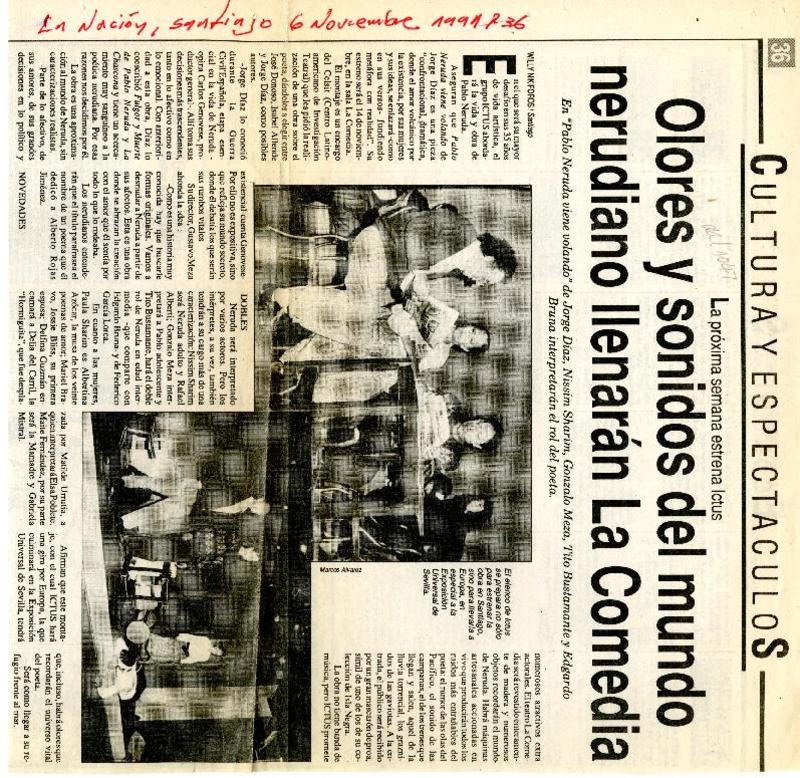 Olores y sonidos del mundo nerudiano llenarán La Comedia [artículo] Willy Nikiforos.