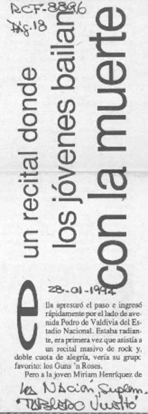 Un Recital donde los jóvenes bailan con la muerte [artículo] Willy Nikiforos.