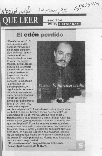 Autores chilenos - Macías, Sergio - Véjar, Francisco - Paraíso oculto - País insomnio