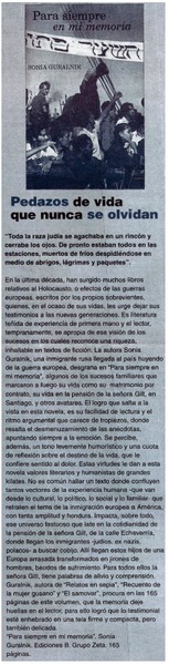 Autoras chilenas - Guralnik, Sonia - Para siempre en mi memoria