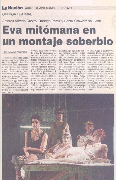 Eva mitómana en un montaje soberbio [artículo] Willy Haltenhoff.