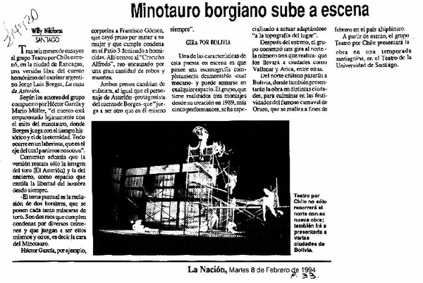 Minotauro borgiano sube a escena [artículo] Willy Nikiforos.