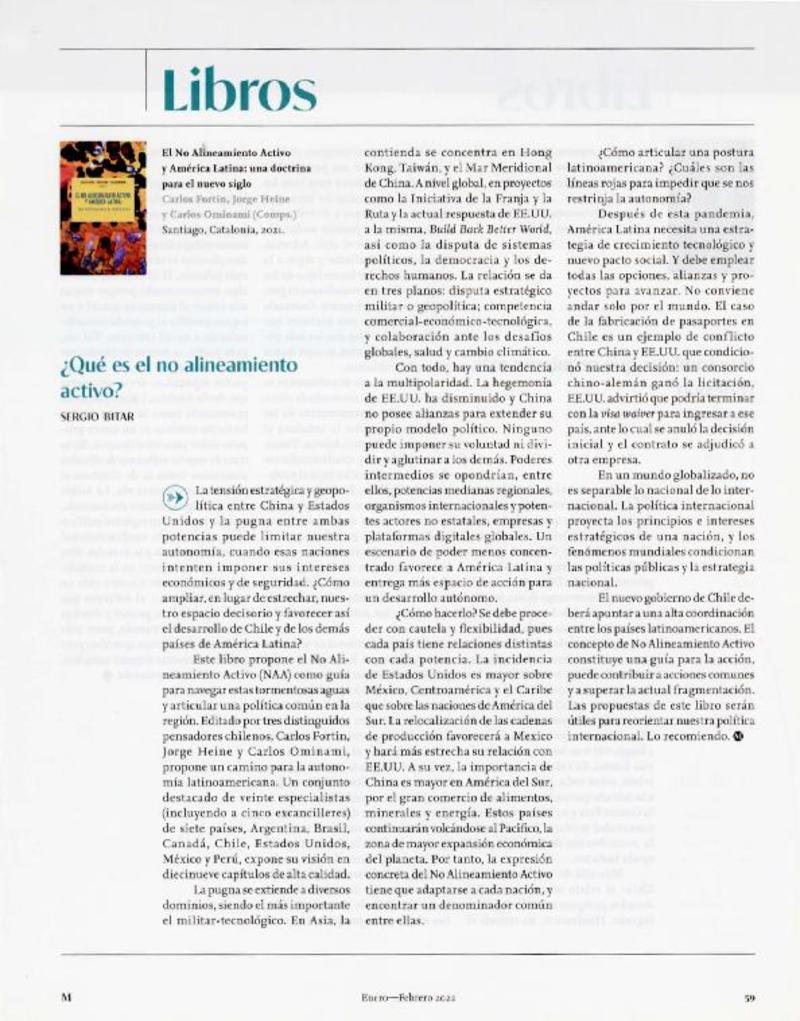 que es el no alineamiento activo? [artículo] Sergio Bitar.