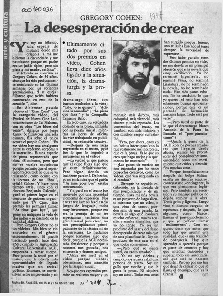 "Ahora soy el más experimental" [artículo] Carolina Díaz T.