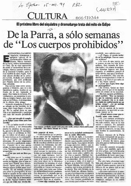 De la Parra, a sólo semanas de "Los cuerpos prohibidos" [entrevista] [artículo] : Alejandra Gajardo.