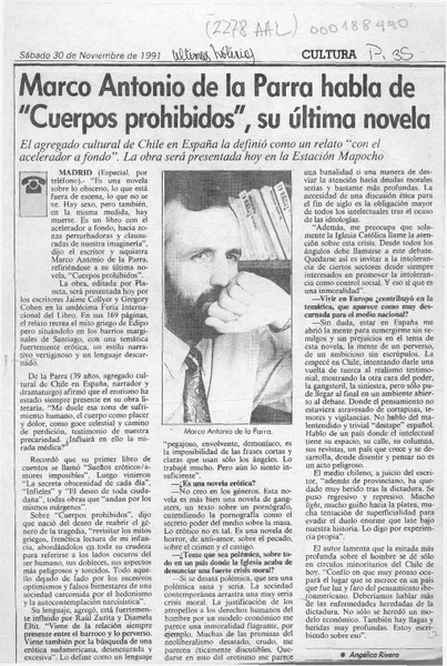 Marco Antonio de la Parra habla de "Cuerpos prohibidos", su última novela [artículo] Angélica Rivera.