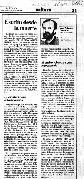 Escrito desde la muerte [artículo] Marco Antonio de la Parra.