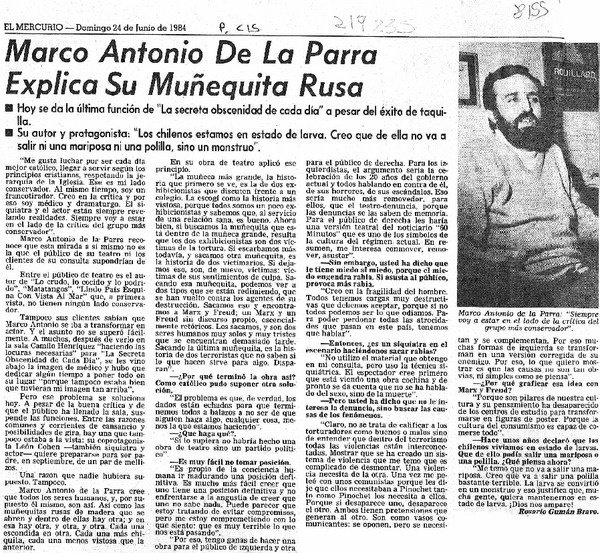 Marco Antonio de la Parra explica su muñequita rusa [entrevista] [artículo] : Rosario Guzmán Bravo.