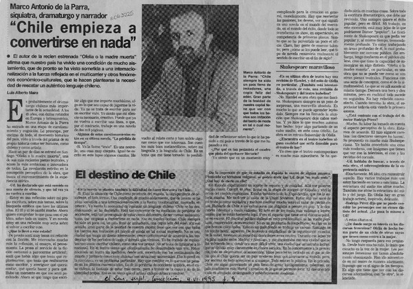 Autores chilenos - Entrevistas - Parra, Marco Antonio de la - Lucrecia y Judith, comedia sin cabeza