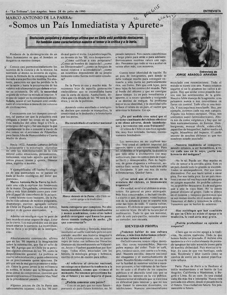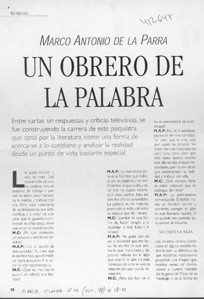 Autores chilenos - Entrevistas - Parra, Marco Antonio de la